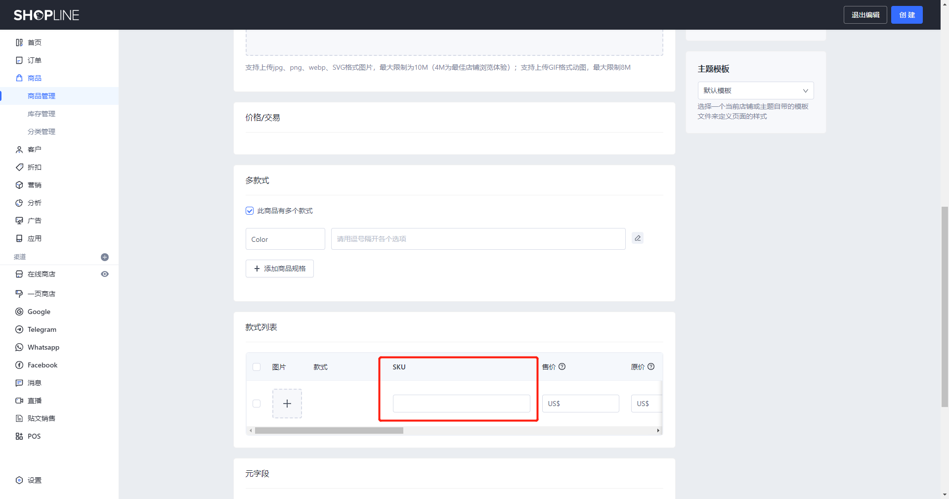 • 含义:该 SKU 关于款式的 SKU 字段设置。