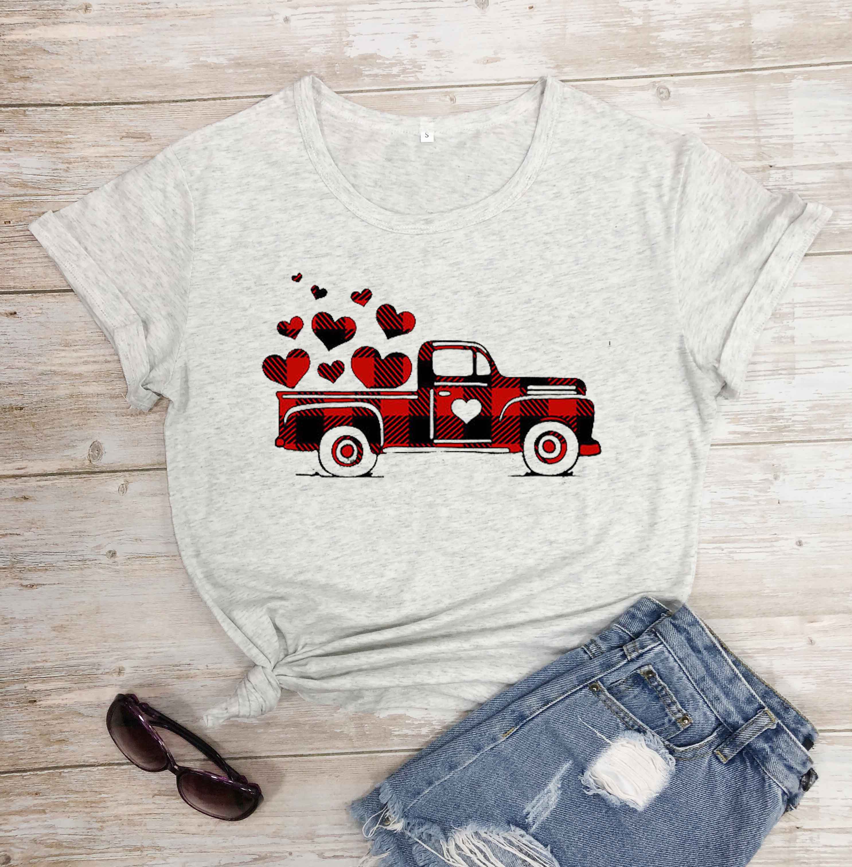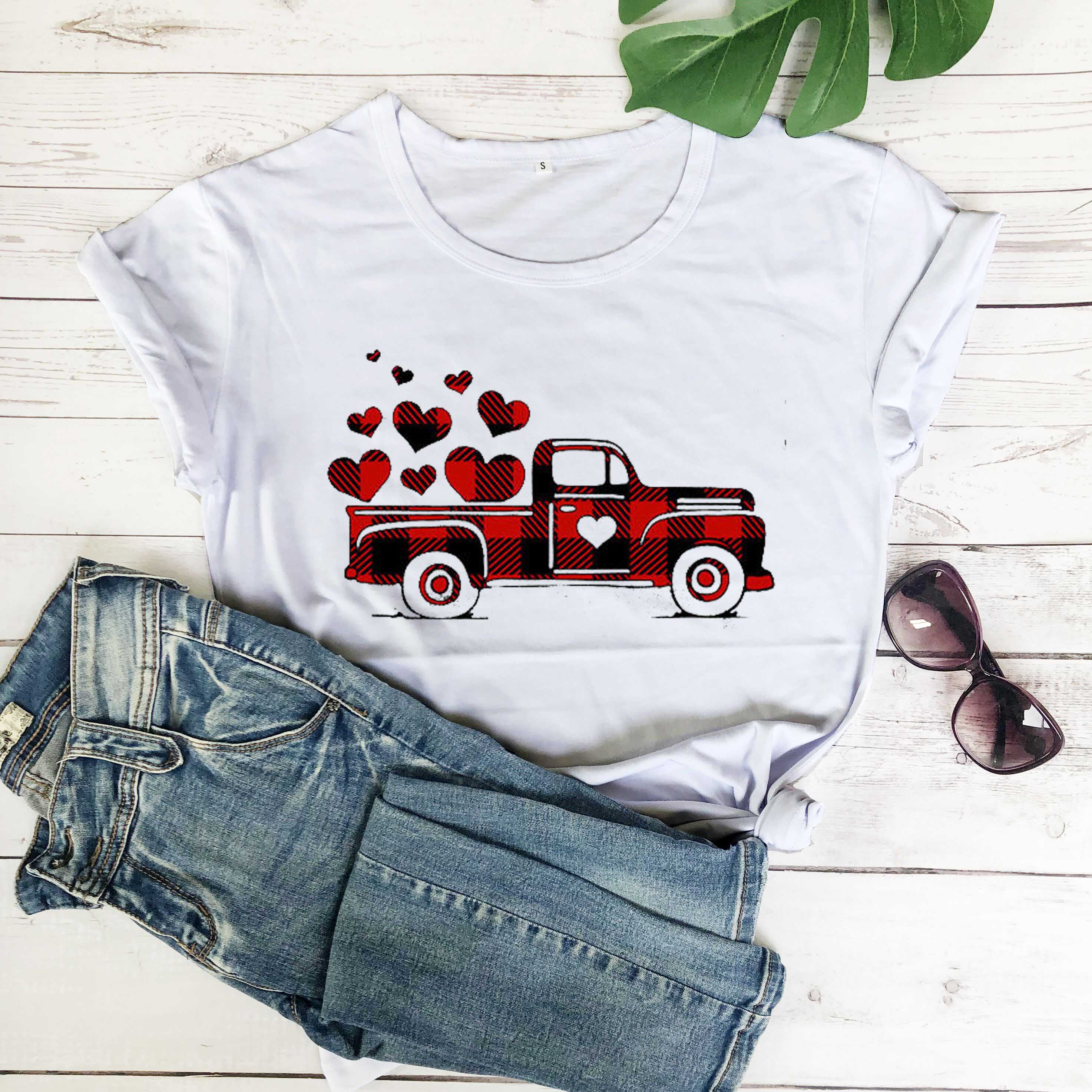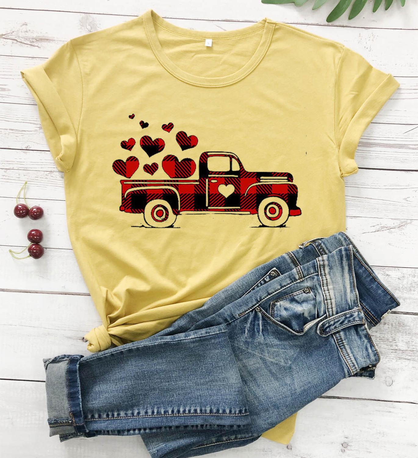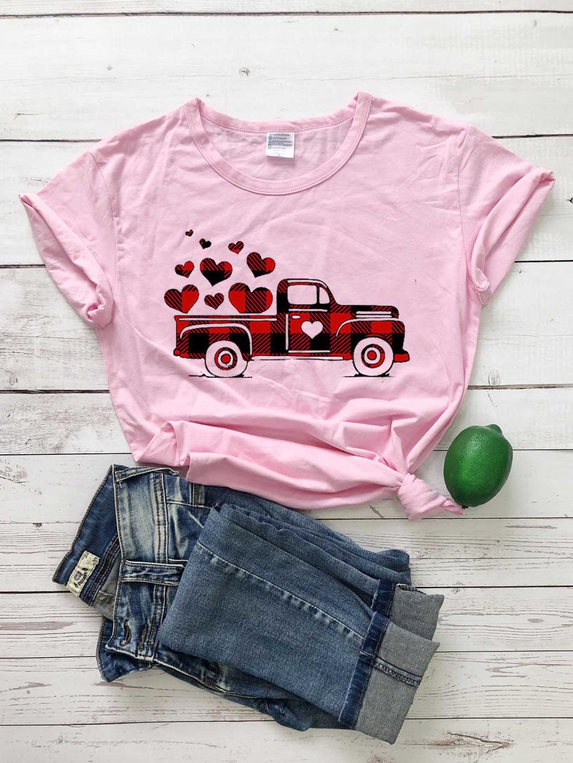 1223勿删-大大大商品-极端商品-500sku-%^&8990004457890#$$%^&*@#%%^&&*())(**&^%$!@#$%^&*()#$%^&*(($%^&*()$%^&*(#$%^&*()#$%^&*()Plaid Printed Splicing Car Heart T-Shirt Valentine's Day women fashion pure cotton casual lover gift young hipster tees art tops
