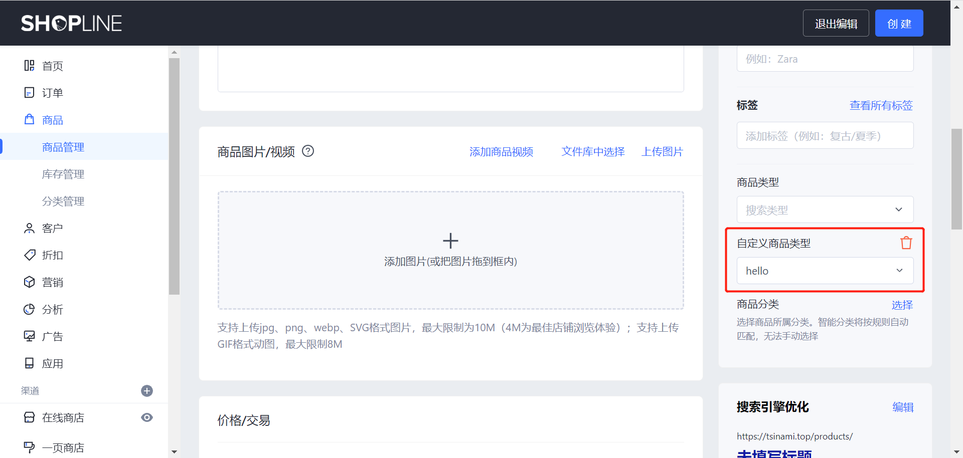 • 自定义商品类型