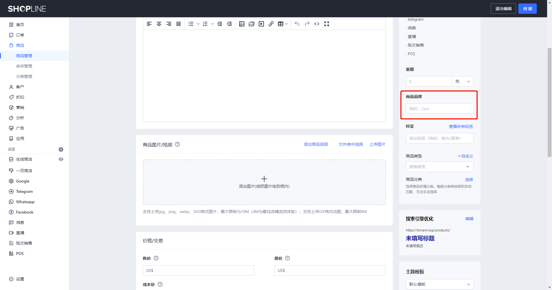 • 可选值:当前店铺下有关联商品的商品品牌。
